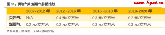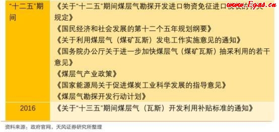 十三五規(guī)劃對煤層氣的中央財政補貼標準由0.2元/立方米提高到0.3元/立方米,十三五規(guī)劃對頁巖氣的補貼政策為:前三年0.3元/立方米,后兩年降至0.2元/立方米,并且山西、陜西、河南、四川等煤層氣大省均對煤層氣開發(fā)實施省內(nèi)補貼,山西、陜西、河南抽采利用補貼為0.1元/立方米,貴州抽采補貼0.15元/立方米,利用補貼0.2元/立方米,可見十三五期間對煤層氣的補貼力度將大幅高于頁巖氣。
