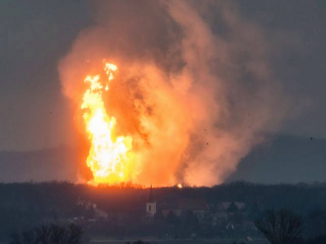 12月12日,奧地利東部、靠近斯洛伐克邊境的鮑姆加藤天然氣中心,爆炸火球沖上天空。(新華/路透)