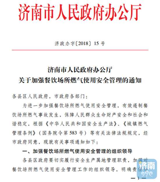 從濟(jì)南市安監(jiān)局獲悉,為進(jìn)一步加強(qiáng)餐飲場(chǎng)所燃?xì)馐褂冒踩芾恚行Ф糁撇惋媹?chǎng)所燃?xì)馐鹿拾l(fā)生,保障人民群眾生命財(cái)產(chǎn)安全和社會(huì)和諧穩(wěn)定,濟(jì)南市政府辦公廳近日印發(fā)《關(guān)于加強(qiáng)餐飲場(chǎng)所燃?xì)馐褂冒踩芾淼耐ㄖ罚ㄒ韵潞?jiǎn)稱《通知》),明確要求各縣區(qū)每半年要至少開展一次餐飲場(chǎng)所燃?xì)馐褂冒踩珜m?xiàng)整治活動(dòng)。