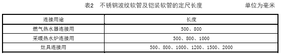 4.13 不銹鋼波紋軟管及鎧裝軟管的定尺長(zhǎng)度應(yīng)符合表2的規(guī)定。