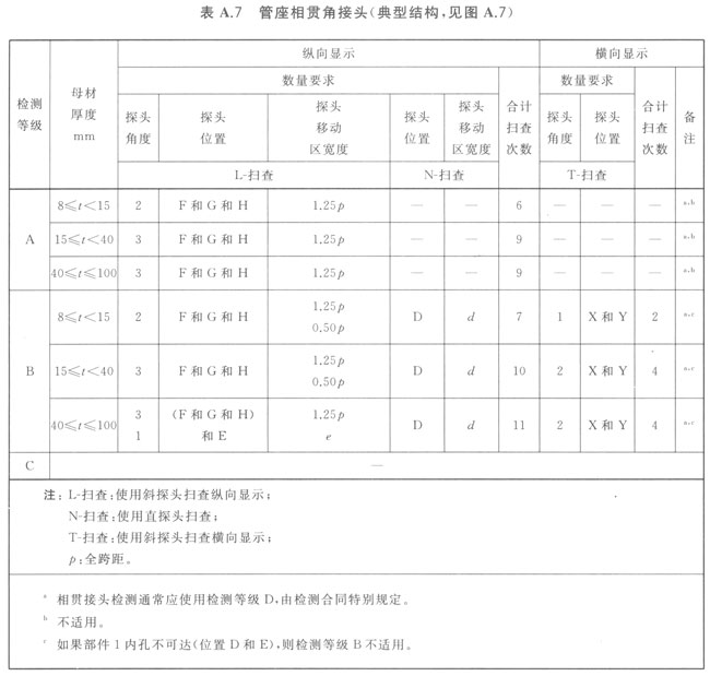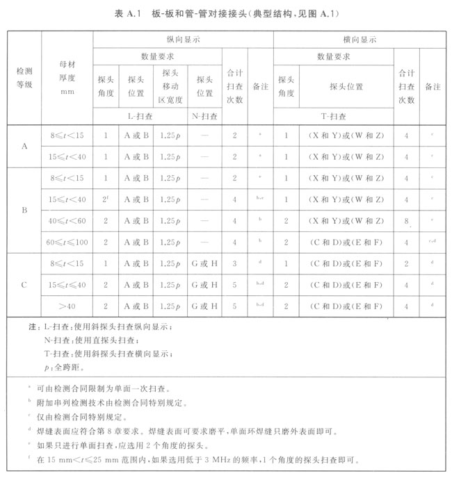 備種類型焊接接頭的測等級,見A1A7和表A1~表A7