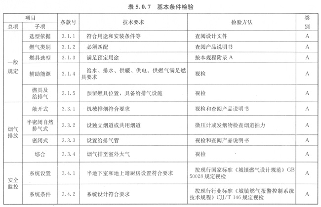 5.0.7燃具基本條件應(yīng)按表5.0.7的規(guī)定進(jìn)行檢驗(yàn)。