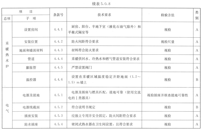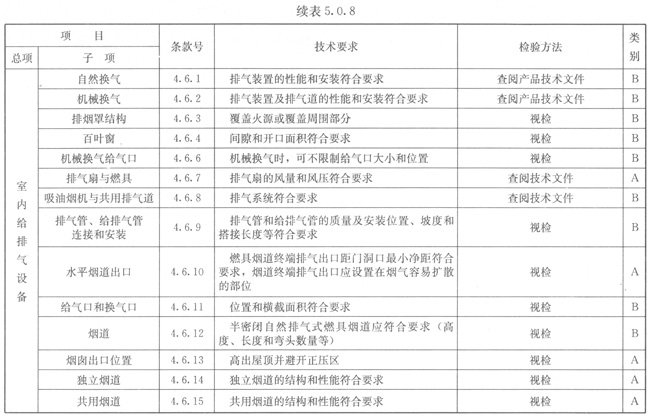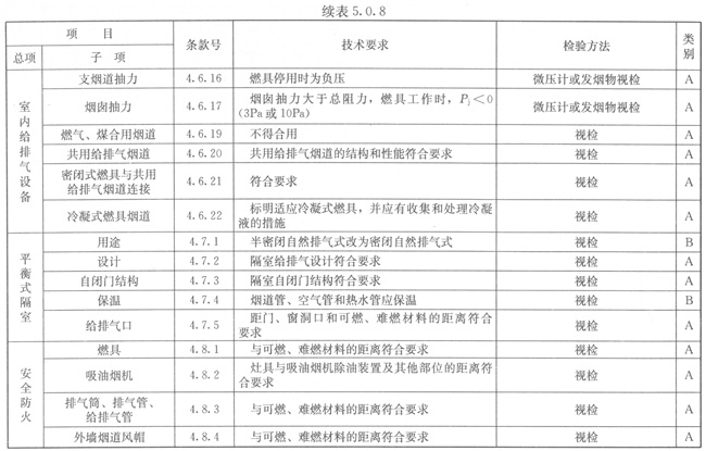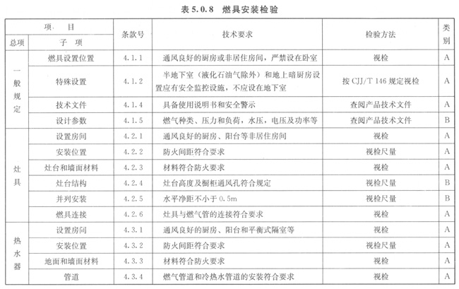 5.0.8燃具安裝應(yīng)按表5.0.8的規(guī)定進(jìn)行檢驗(yàn)。