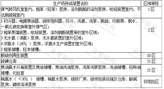 附錄B 煤氣凈化車間主要生產(chǎn)場所爆炸及火災(zāi)危險區(qū)域等級