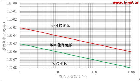 圖3 荷蘭社會(huì)可接受風(fēng)險(xiǎn)標(biāo)準(zhǔn)