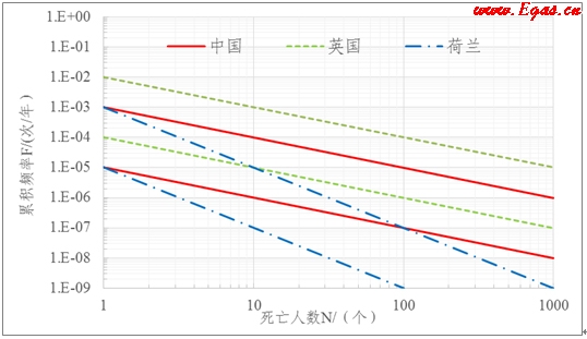 將三個(gè)典型國(guó)家(地區(qū))的社會(huì)可接受風(fēng)險(xiǎn)標(biāo)準(zhǔn)相比較,可看出中國(guó)香港地區(qū)的社會(huì)可接受風(fēng)險(xiǎn)標(biāo)準(zhǔn)比荷蘭的要求低,但比英國(guó)的要求高??傮w看中國(guó)香港的社會(huì)可接受風(fēng)險(xiǎn)標(biāo)準(zhǔn)在發(fā)達(dá)國(guó)家和地區(qū)的風(fēng)險(xiǎn)標(biāo)準(zhǔn)處于中等水平。