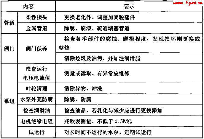 表5.7.5 給水排水系統(tǒng)維護(hù)內(nèi)容及要求