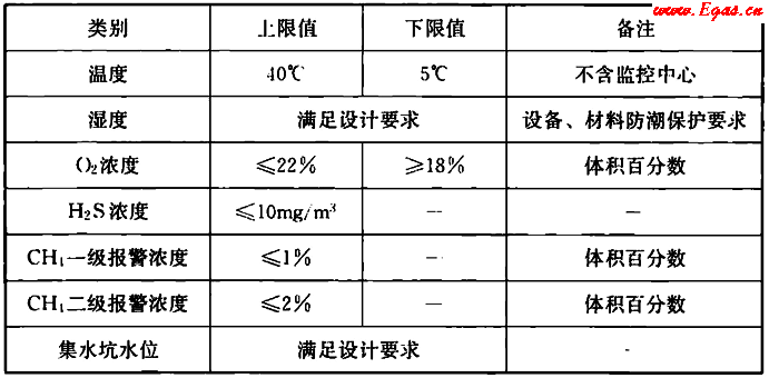 5.6.4 環(huán)境與設(shè)備監(jiān)控系統(tǒng)環(huán)境參數(shù)檢測(cè)內(nèi)容、報(bào)警設(shè)定值應(yīng)符合現(xiàn)行國(guó)家標(biāo)準(zhǔn)《城鎮(zhèn)綜合管廊監(jiān)控與報(bào)警系統(tǒng)工程技術(shù)標(biāo)準(zhǔn)》GB/T 51274和《密閉空間作業(yè)職業(yè)危害防護(hù)規(guī)范》GBZ/T 205的規(guī)定。主要環(huán)境參數(shù)報(bào)警設(shè)定值應(yīng)符合表5.6.4的規(guī)定。