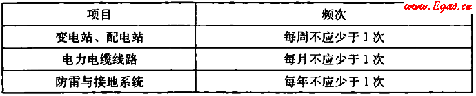 表5.4.5 供電系統(tǒng)巡檢頻次要求