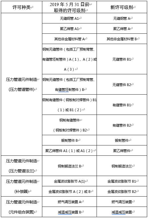 14.進(jìn)口壓力管道元件許可。根據(jù)前期試點(diǎn)情況,自2022年6月1日起,進(jìn)口壓力管道管子(A、B)、壓力管道閥門(mén)(A1、A2、B)的制造單位應(yīng)當(dāng)取得《中華人民共和國(guó)特種設(shè)備生產(chǎn)許可證》,并按相關(guān)安全技術(shù)規(guī)范要求通過(guò)型式試驗(yàn)和制造監(jiān)督檢驗(yàn)(或者進(jìn)口安全性能監(jiān)督檢驗(yàn)),過(guò)渡期至2024年5月31日。