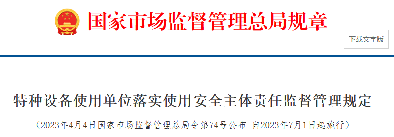 特種設備使用單位落實質(zhì)量安全主體責任監(jiān)督管理規(guī)定