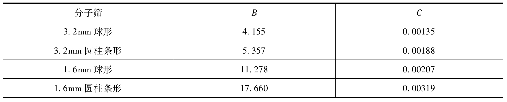 Dp——分子篩的平均直徑(球形)或當(dāng)量直徑(條形),m;