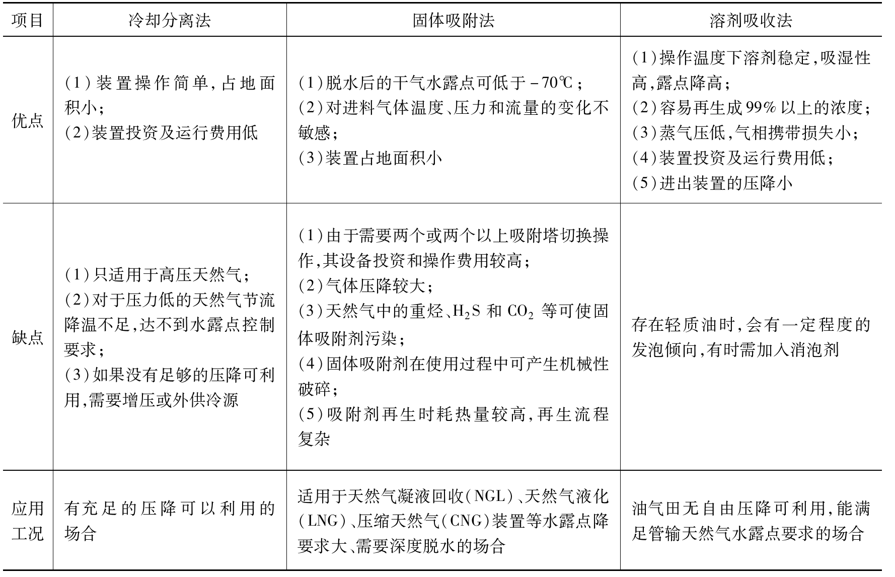 天然氣三種脫水方法的比較見(jiàn)表2-6。