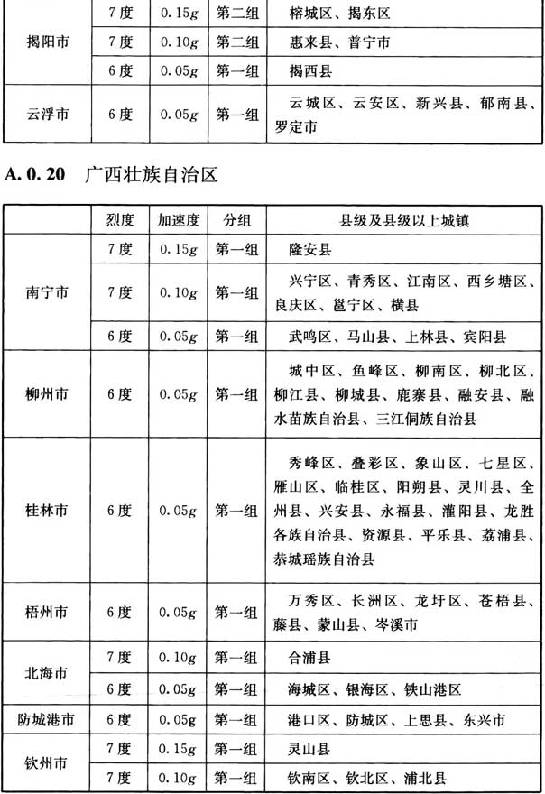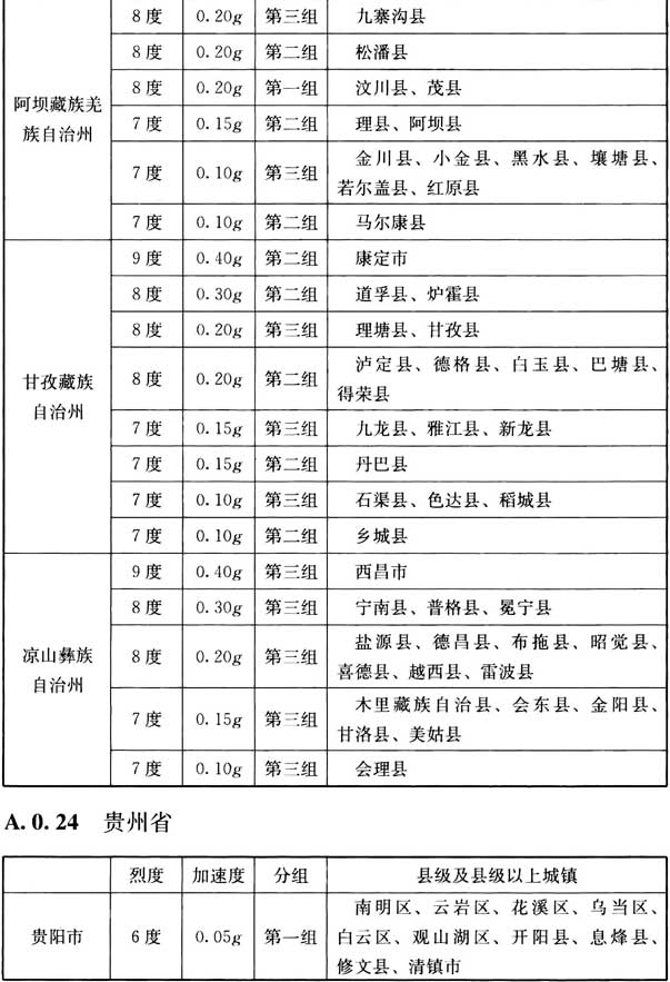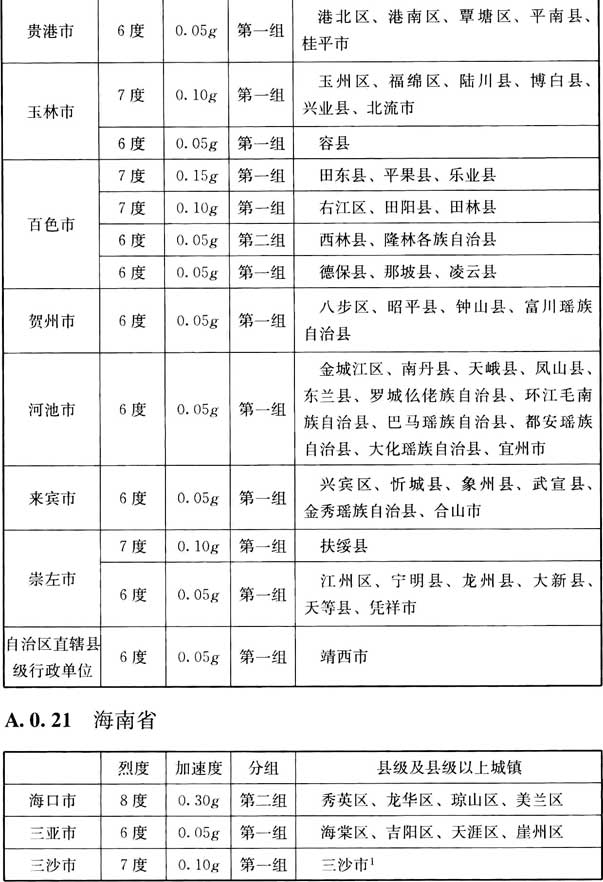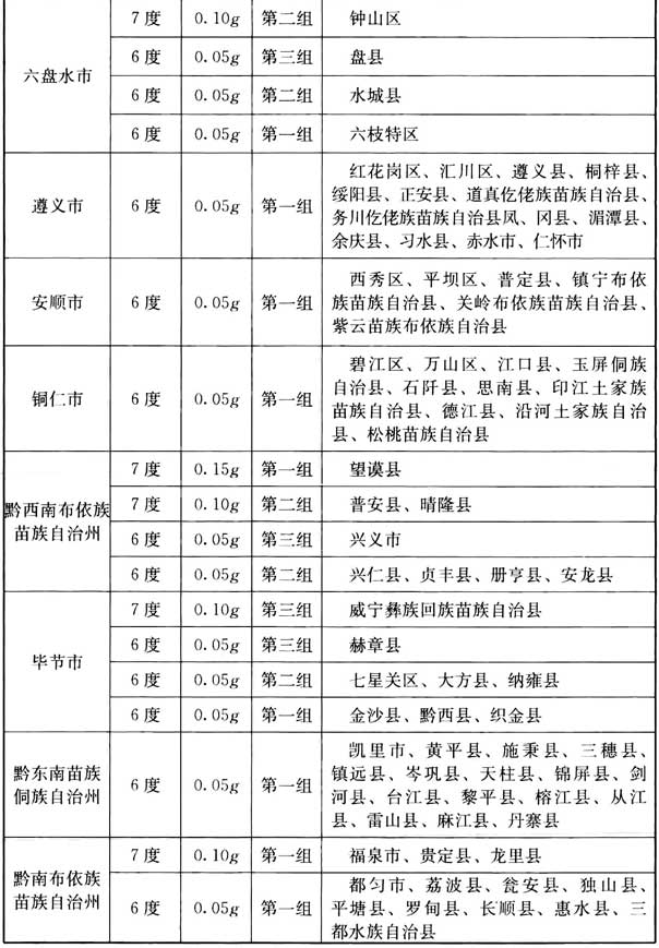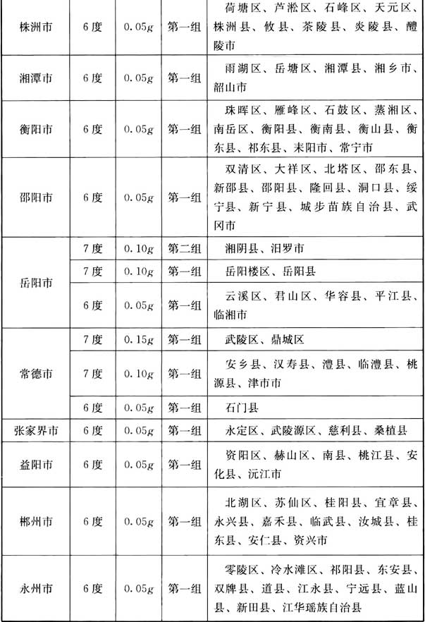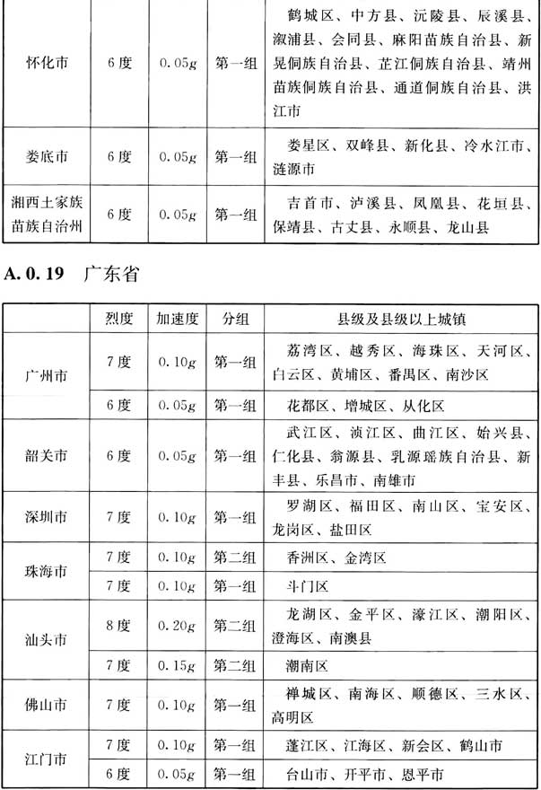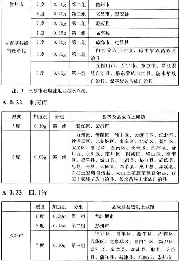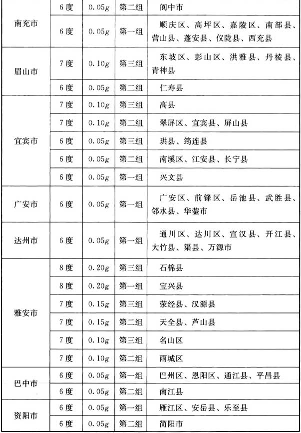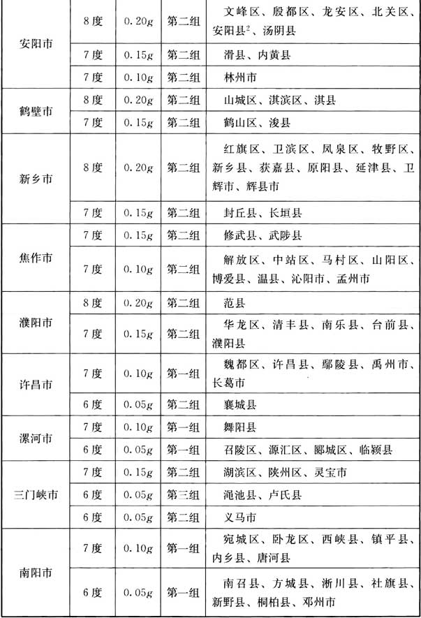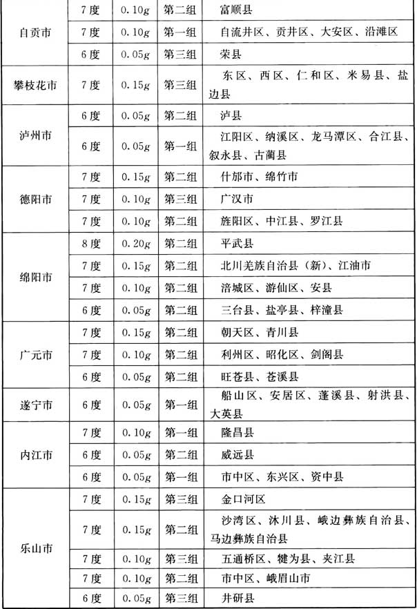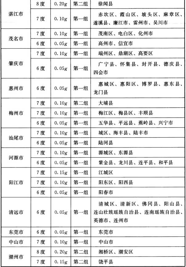 我國主要城鎮(zhèn)抗震設(shè)防烈度、設(shè)計基本地震加速度和設(shè)計地震分組