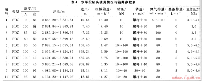2) 在氮?dú)馀菽@井中,單只鉆頭進(jìn)尺為455.36m,平均機(jī)械鉆速為6.75m/h,創(chuàng)該地區(qū)單鉆頭水平段進(jìn)尺的紀(jì)錄。