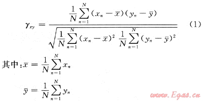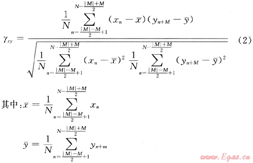M是Yn相對于Xn的深度差(采樣點(diǎn)數(shù)差),式(2)在M<<N時(shí)適用。以M為變量,在適當(dāng)?shù)乃阉鞔伴L內(nèi)變化,則當(dāng)M正好為yn相對于xn的實(shí)際深度差時(shí),計(jì)算得到的γxy應(yīng)為最大。以此反推,在搜索窗長范圍內(nèi),當(dāng)計(jì)算的相關(guān)系數(shù)最大時(shí),M即為yn相對于xn的實(shí)際深度差(采樣點(diǎn)數(shù)差)。