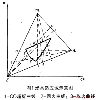 開(kāi)發(fā)設(shè)計(jì)燃具時(shí),首先要決定使用某類(lèi)燃?xì)狻8鶕?jù)某類(lèi)燃?xì)獾幕鶞?zhǔn)氣[1]設(shè)計(jì)、生產(chǎn)后按照基準(zhǔn)氣及界限試驗(yàn)氣的要求(包括壓力)調(diào)整檢驗(yàn)出廠(chǎng)。當(dāng)燃?xì)庑再|(zhì)(成分)發(fā)生變化時(shí),其工作狀態(tài)必然改變。如果燃?xì)獬煞肿兓谀骋唤缦薹秶鷥?nèi),它仍能保持正常工作。這就是燃具對(duì)燃?xì)獬煞肿兓倪m應(yīng)能力,稱(chēng)為燃具的適應(yīng)性。每個(gè)燃具都有一定的適應(yīng)能力。量化這個(gè)適應(yīng)能力,可以用燃具適應(yīng)燃?xì)獬煞肿兓姆秶鷣?lái)表示。適應(yīng)燃?xì)獬煞肿兓姆秶鷧^(qū)間稱(chēng)為燃具適應(yīng)域。適應(yīng)域的范圍越寬,表示燃具的適應(yīng)燃?xì)鈿赓|(zhì)變化的能力越強(qiáng)[2]。
