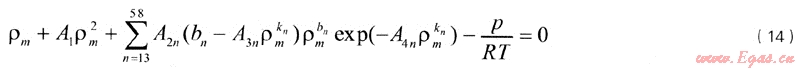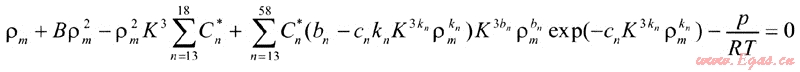 AGA8-92DC方程來自美國(guó)煤氣協(xié)會(huì)(AGA)。美國(guó)煤氣協(xié)會(huì)在天然氣壓縮因子和超壓縮因子表的基礎(chǔ)上,開展了大量研究,于1992年發(fā)表了以狀態(tài)方程為基礎(chǔ)計(jì)算壓縮因子的AGA No.8報(bào)告及AGA8-92DC方程[2]。