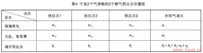 利用儲備量總和式③來分析寧波2009年的儲備量:寧波現(xiàn)階段的氣源地主要是鎮(zhèn)海煉化以及小部分來自大連、青島等地,在輸烴管因外力受損而無法工作的情況下運輸方式分別為陸路和水路。如表4所示