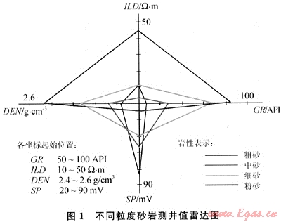 以往的巖性和沉積環(huán)境的研究工作[1~2]都是主要通過(guò)巖心觀察或者綜合分析巖屑錄井資料,但取心及巖屑錄井資料都有限。而事實(shí)上,每口井的各種測(cè)井資料所提供的豐富的地質(zhì)信息并未得到充分的利用,高效利用測(cè)井資料中豐富地質(zhì)信息已成為沉積相的研究工作從定性解釋向定量解釋發(fā)展的方向了。近年來(lái),于民鳳等[3]通過(guò)蜘蛛網(wǎng)圖和梯形圖的方法,展示了不同沉積相的特征;唐洪等[4]應(yīng)用直方圖或頻率交會(huì)圖等方法,從測(cè)井相等展示了不同沉積相的特征;嚴(yán)科等[5]實(shí)現(xiàn)了沉積微相的人機(jī)交互識(shí)別,應(yīng)用Bayes統(tǒng)計(jì)方法,建立測(cè)井相-沉積微相線(xiàn)性判別模型,取得了明顯的成效。