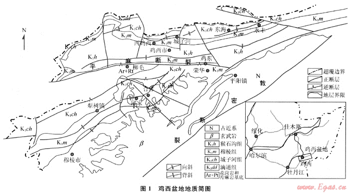 雞西盆地是大慶外圍較重要的中新生代盆地,沉積了超過(guò)2000m的早白堊世海陸交互相和陸相富含煤和暗色泥巖地層。但油氣勘探尚處在起步階段[1],對(duì)該盆地的含氣性研究程度很低。筆者根據(jù)野外地質(zhì)考察認(rèn)識(shí)、樣品分析數(shù)據(jù)并綜合大量煤田鉆探資料,對(duì)雞西盆地的油氣地質(zhì)條件進(jìn)行初步分析,希望能給相關(guān)研究提供借鑒。