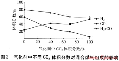 二氧化碳及水蒸氣與煤焦共氣化煤氣組成分析