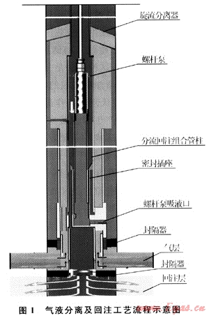 井下氣液分離及同井回注系統(tǒng)是一種結(jié)構(gòu)簡單、體積小、投資低、效率高的排水采氣設(shè)備,能夠?qū)崿F(xiàn)井下氣液分離、產(chǎn)出水同井回注的功能,可大幅度降低排水采氣的成本,是出水氣井開采中值得推廣的技術(shù)[4~6]。