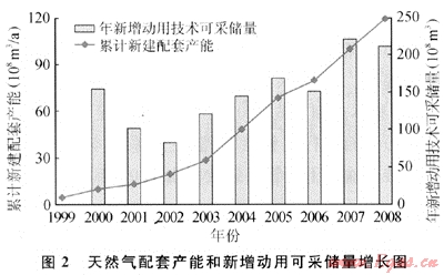 10年來(lái),新建成沙坪場(chǎng)等15個(gè)新氣田,新增配套產(chǎn)能74×108m3/a;優(yōu)化調(diào)整老區(qū)補(bǔ)充產(chǎn)能建設(shè),有效彌補(bǔ)了老氣田產(chǎn)能,新增配套產(chǎn)能45.5×108m3/a。新老區(qū)共計(jì)新增配套產(chǎn)能119.5×108m3/a,新增動(dòng)用可采儲(chǔ)量1355×108m3(如圖2)。