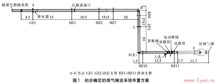 根據(jù)校核計(jì)算,初步確定的煤氣輸送系統(tǒng)布置方案滿足動(dòng)力管道設(shè)計(jì)要求,確定為最終方案。