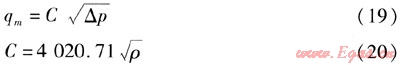 查表得知空氣在20℃、0kPa時(shí)密度為1.189kg/m3;在20℃、25kPa時(shí)密度為1.486kg/m3。將這些數(shù)據(jù)代入式(8)、(9)組成的方程組,解得A1=1.189,A2=0.0119。