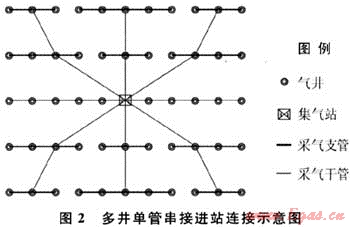 此種串接方式優(yōu)化了管網(wǎng)布置,縮短了采氣管線長度,增加了集氣站轄井數(shù)量,降低了管網(wǎng)投資,減少了對生態(tài)環(huán)境的破壞,適應低壓、低產(chǎn)的煤層氣田大規(guī)模開發(fā)。