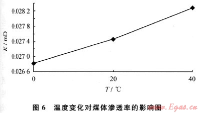 2) 實(shí)驗(yàn)研究了溫度變化情況下煤體的滲流規(guī)律。結(jié)果表明,隨著溫度的升高,煤體瓦斯的滲透率升高。