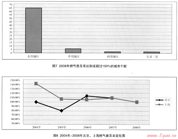 (3) 上述結(jié)論也可從以下將討論的2008年我國燃?xì)馄占奥蔬_(dá)到或超過l00%的城市狀況得出。