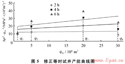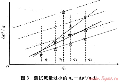 綜合這兩方面因素分析,如果測試流量過小,就會無法得出相互平行的修正等時試井產(chǎn)能曲線,以致增大測試結果的誤差。