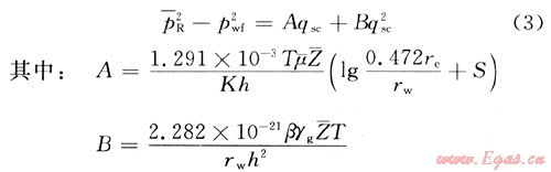 1) 當測試流量達到相對穩(wěn)定狀態(tài)以后,不同測量時距下的re可看作不再變化,壓差(△p)也不再變化,根據(jù)二項式穩(wěn)定產(chǎn)能方程得: