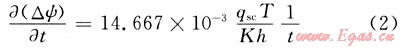 ;qsc為標準狀況下的測試流量,104m3/d;K為儲層滲透率,10-3μm2;φ為孔隙度;t為生產(chǎn)時間;μ為天然氣黏度,mPa·s;Ct為總壓縮系數(shù),1/MPa;h為有效厚度,m;Z為氣體偏差系數(shù)。將式(2)對t求導數(shù)可得: