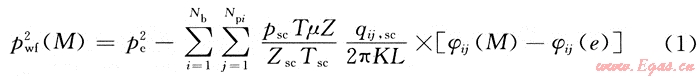 式中:qij為氣體從氣藏流入第i分支第j井段的流量;φij(M)為第i分支的第j井段在氣藏中任意點(diǎn)M處產(chǎn)生的勢(shì)。