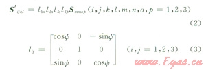式中Smnop為斜坐標(biāo)系中的柔度矩陣,Sijkl為水平坐標(biāo)系中的柔度矩陣,lij為方向余弦矩陣。