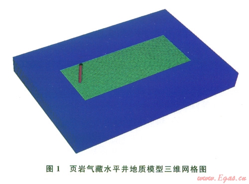 頁巖儲層基質(zhì)滲透率極低且發(fā)育不同程度的微裂縫,整體表現(xiàn)為雙孔特征。因此,通常應(yīng)用雙孔模型對頁巖儲層進行數(shù)值模擬研究。通過借鑒國外頁巖儲層典型參數(shù)建立了頁巖氣藏水平井雙孔地質(zhì)模型,頁巖儲層深度2 000 m,有效厚度30 m,孔隙度0.05,基質(zhì)滲透率0.001 mD,原始含氣飽和度為0.70,原始地層壓力20 MPa,Langmuir壓力3 MPa,Langmuir體積13 m3/m3,天然氣總地質(zhì)儲量5.4276×108 m3。頁巖氣藏水平井地質(zhì)模型長l 210 m,寬