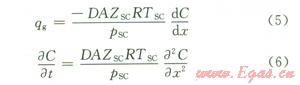 式(5)~(6)中qg表示擴散流量,m3/s;D表示擴散系數(shù),m2/s;A表示面積,m2;ZSC表示標準狀況下氣體壓縮因子,無量綱單位;R表示通用氣體常數(shù);TSC表示標準溫度,℃;pSC表示標準壓力,MPa;C表示摩爾濃度,kg/m3;t表示時間,s。