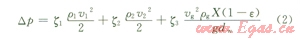 除塵器的壓降模型為: