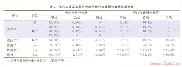 發(fā)育不整合面,構造兩側發(fā)育深大斷裂[36]。如表3所示,天然氣的干燥系數(shù)較大(0.965~0.993),而且自東向西增大;天然氣的甲烷碳同位素值為-37.8‰~-34.9‰,也展示出自東向西甲烷碳同位素加重的趨勢。因此,在地層水存在側向運移時,水溶氣也隨著發(fā)生側向運移,早脫溶出來的天然氣甲烷碳同位素偏輕,運移一段距離后脫溶出來的天然氣甲烷碳同位素值變重。由于該氣田是碳酸鹽巖儲層,地層水中含有較多的C02,因此其不僅存在烴類的水溶氣脫溶與運移效應,而且存在C02的運移效應,如氣田東部天然氣中C02的含量為0%~6%,而氣田西部天然氣中所含的C02為8%~l8%[10]。由此可知,碳酸鹽巖儲層中水溶氣的脫溶聚集,不僅存在甲烷含量高、運移距離越遠甲烷碳同位素值越重的特征,而且還存在C02運移距離越遠含量越高的效應。