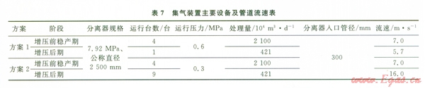 下面僅以天然氣處理廠集氣裝置中的氣液分離器和進(jìn)口管道為例,說明上述因素對增壓方案的影響。