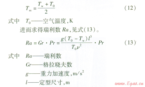 首先由空氣的定性溫度Tm確定其物性參數,Tm計算公式為: