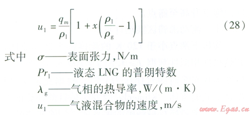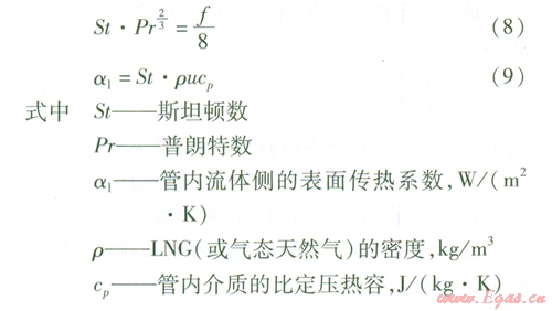 管內LNG或氣態(tài)天然氣的對流換熱可以按照內部強制對流換熱的實驗準則關聯(lián)式進行計算。