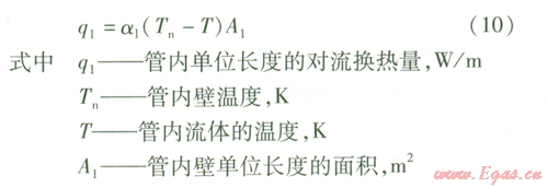 由此可以確定出管內單位長度的對流換熱量ql: