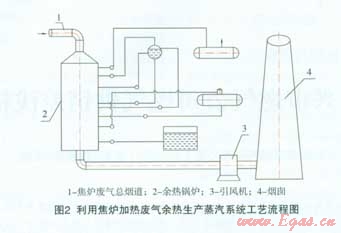 利用焦?fàn)t加熱廢氣余熱生產(chǎn)蒸汽系統(tǒng)”工藝流程見圖2。