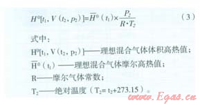 對(duì)于給定摩爾組分的理想燃?xì)饨M分,在燃燒溫度tl和壓力pl、計(jì)量溫度t2和壓力p2時(shí)的理想體積高熱值計(jì)算公式如下: