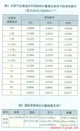 天然氣各主要組分在不同體積計(jì)量參比條件下的求和因子下表4所示。