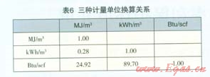 國(guó)際上常用的計(jì)量體積單位有m3、scf等;計(jì)量溫度單位有℃、℉、K等;計(jì)量壓力單位有psi、Pa、bar、Atm等;計(jì)量能量單位有J、kWh、Btu、kcaI等[4]。各單位之問的換算關(guān)系如表5所示。